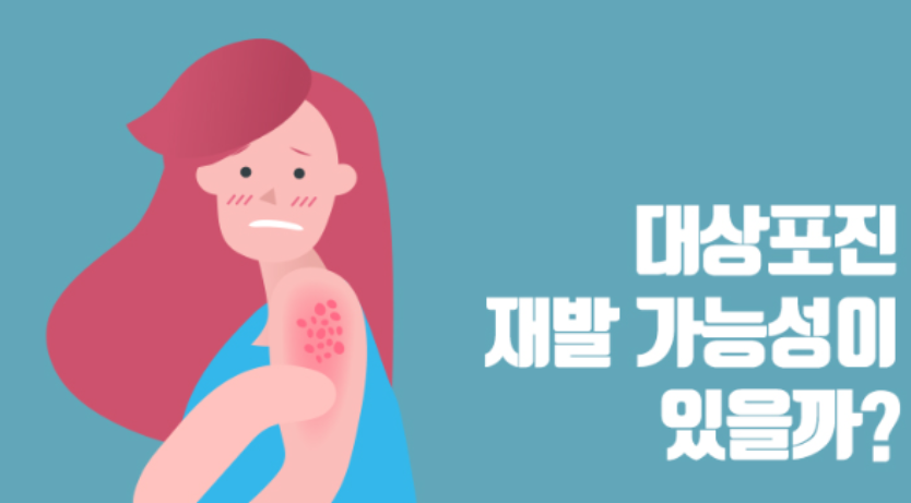 면역력이 약해지면 언제든 재발할 수 있습니다! 재발률은 약 1~5% 정도로 알려져 있으며, 재발 시 처음 발병했을 때와 유사한 증상이 나타납니다.