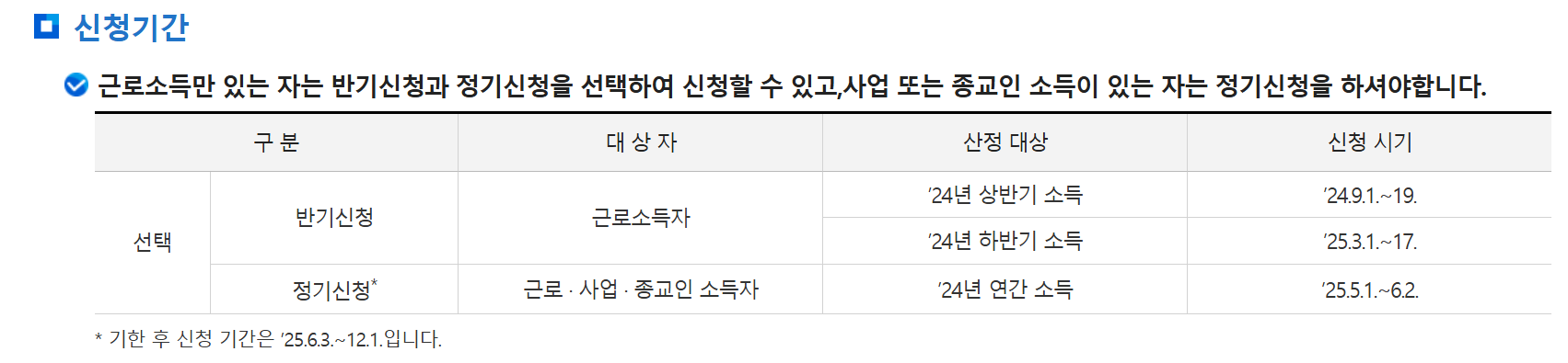 정기신청과 반기신청, 두 가지 방법이 있다는 것, 잊지 마세요!